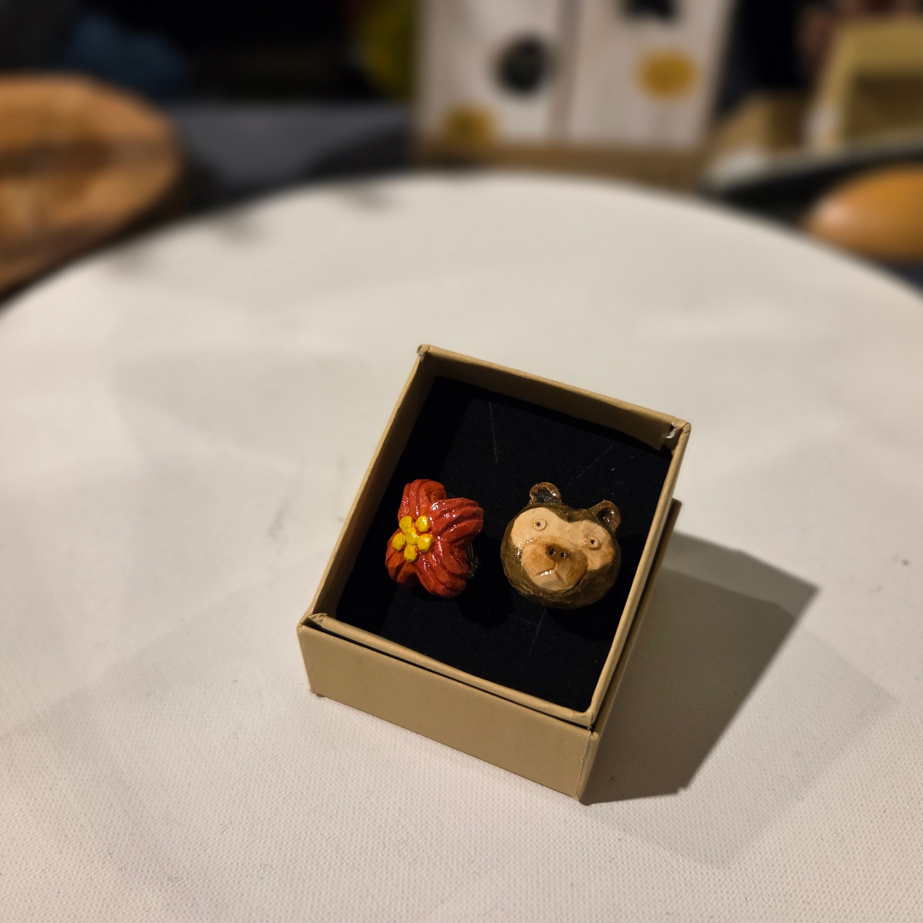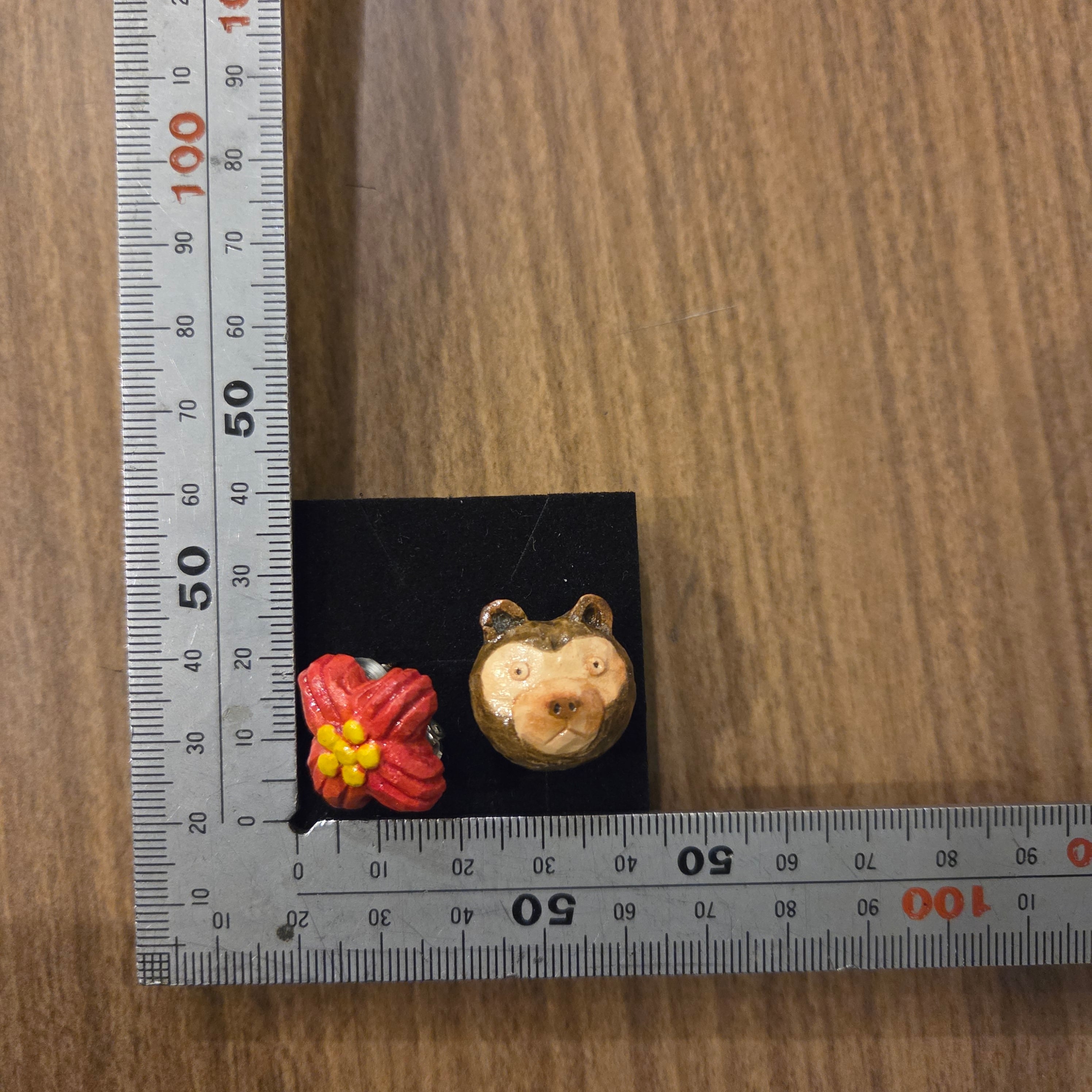 tomoko chiba 千葉朋子41 / 3アボカド種彫りイヤリング マレーグマ×花(赤)