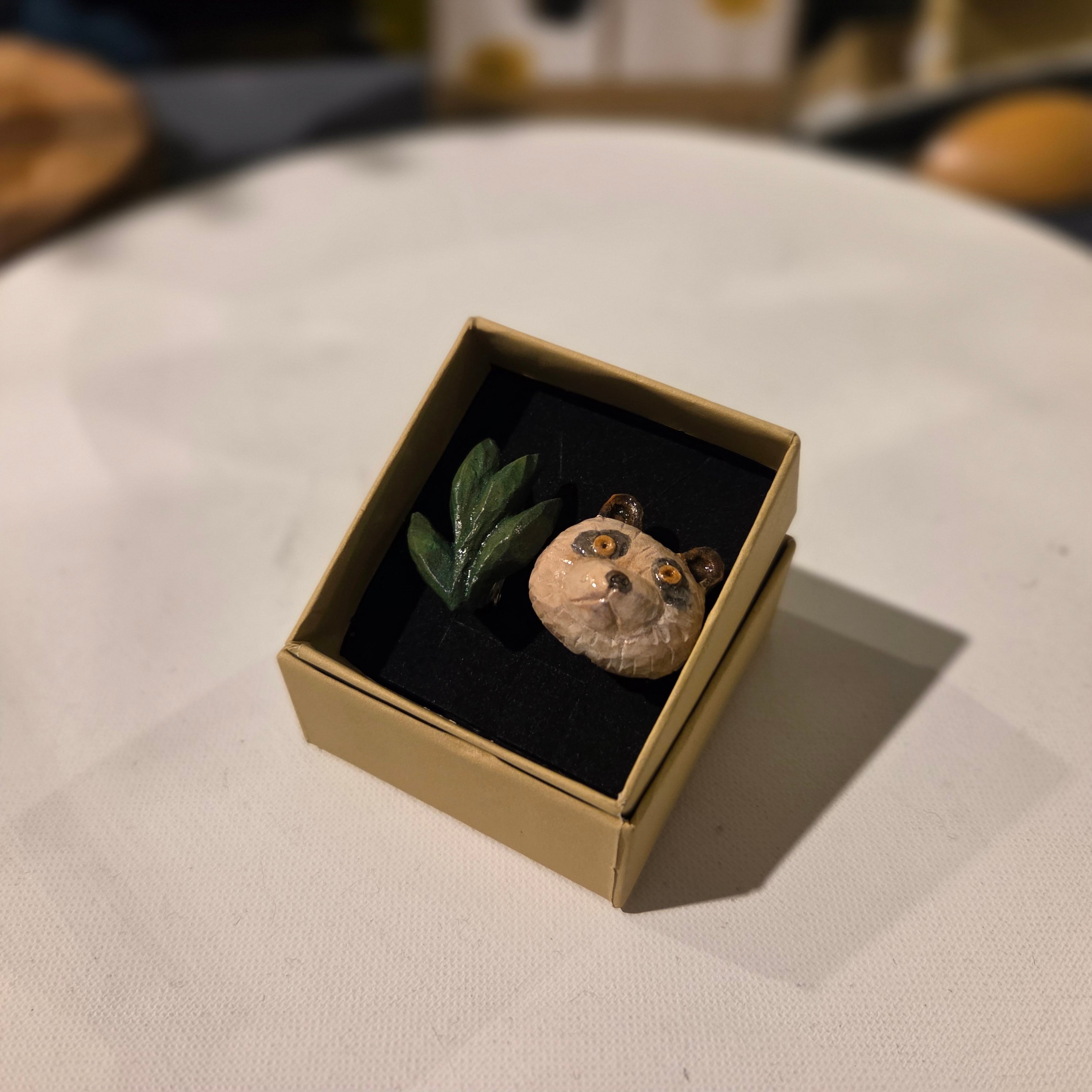 tomoko chiba 千葉朋子41 / 5アボカド種彫りイヤリング パンダ×笹