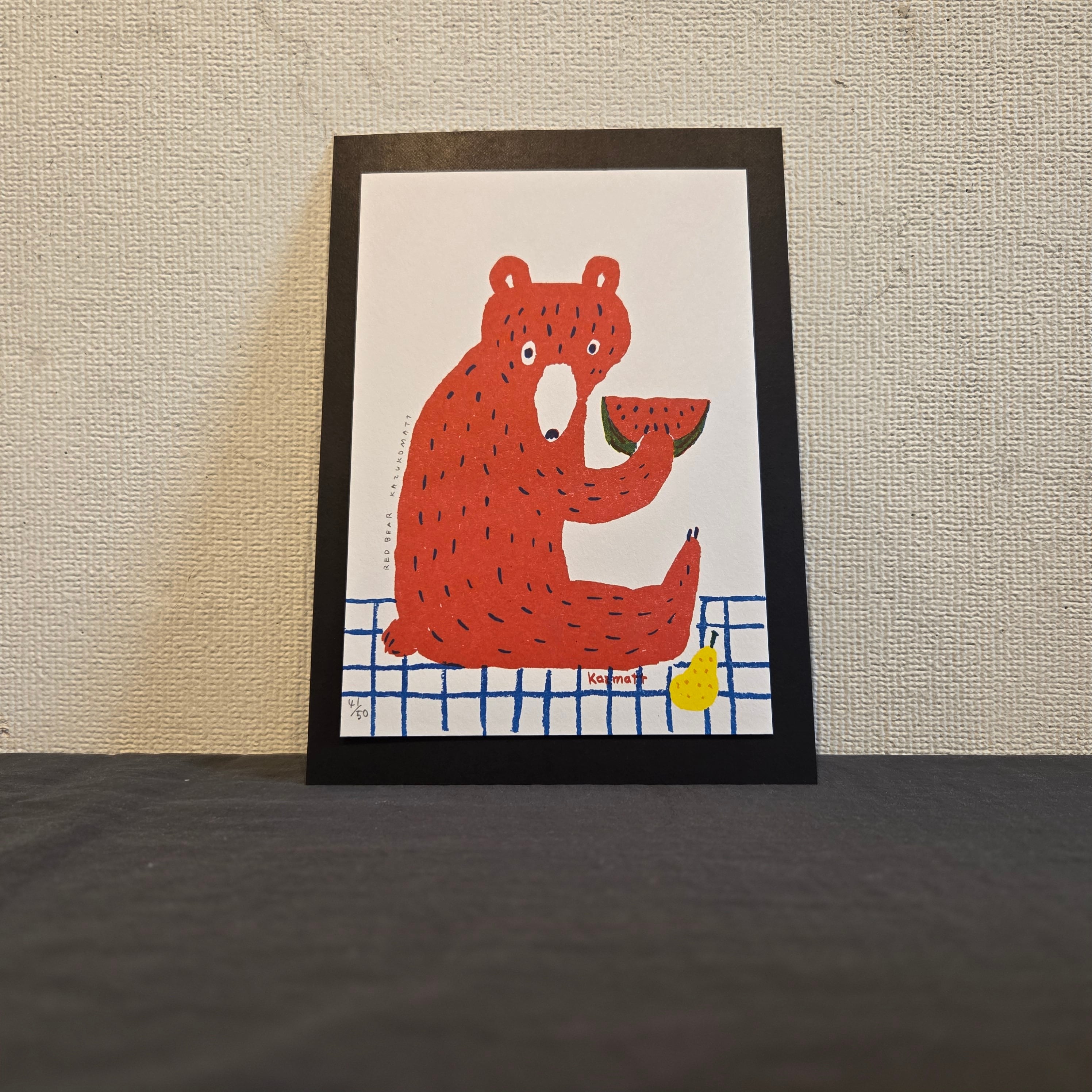 ・作品名:リソグラフプリント赤クマシート