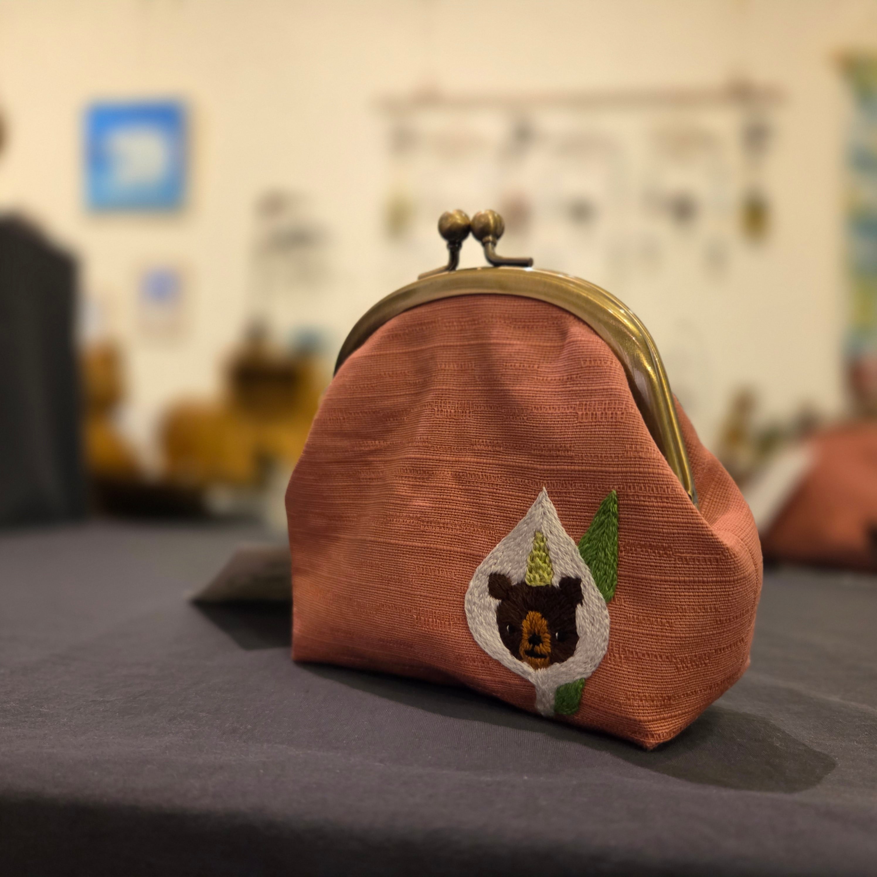 ・作品名:ラウンドポーチくま×水芭蕉 ピンク