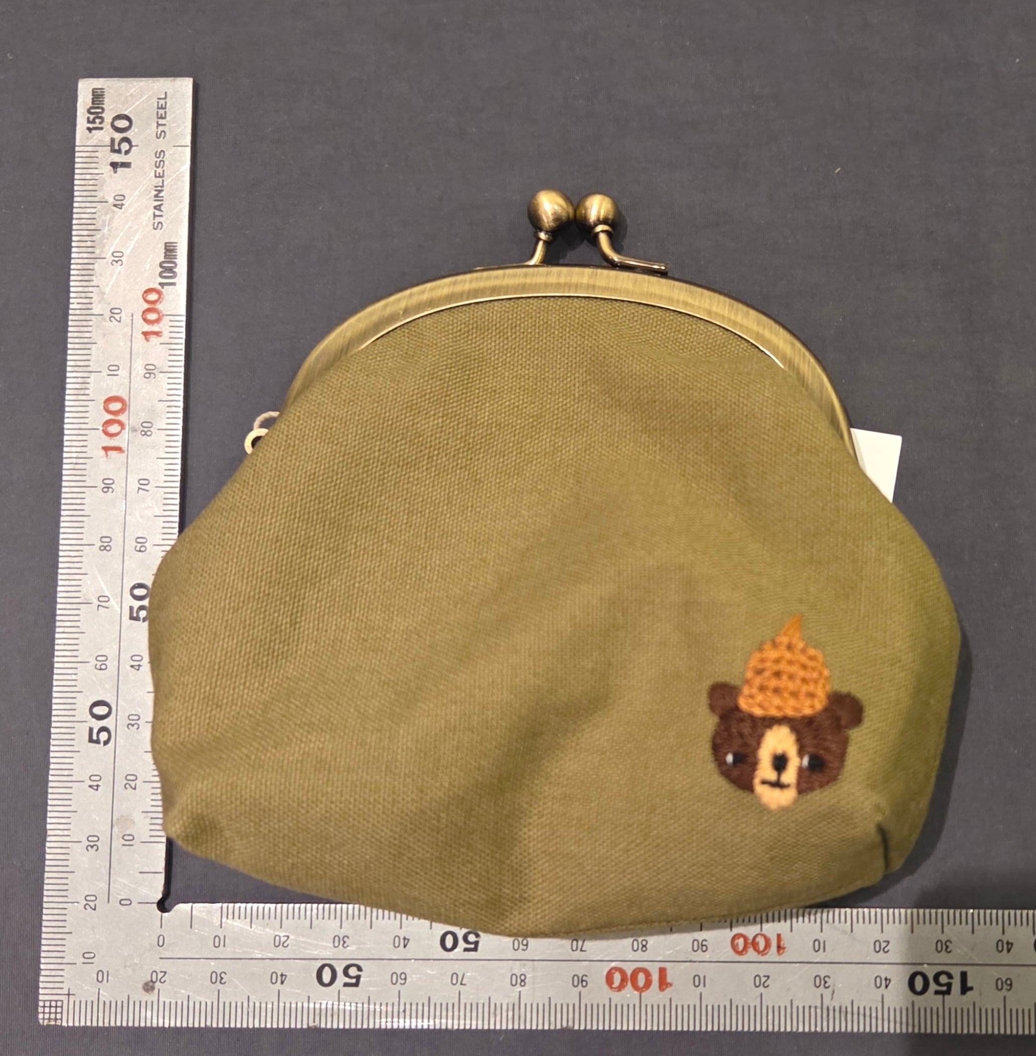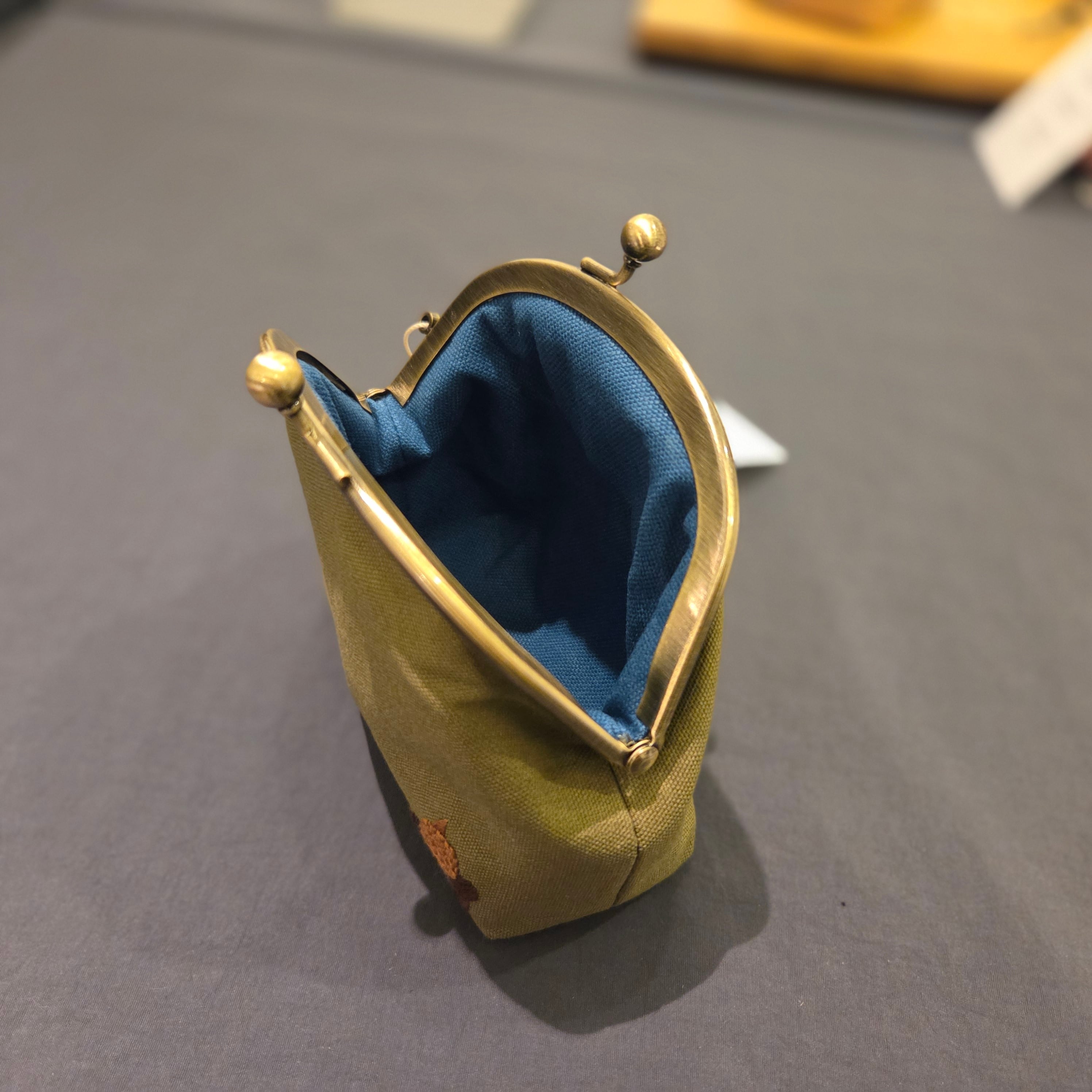 いとはりおしごと80 / 3ラウンドポーチ くま×どんぐり 緑