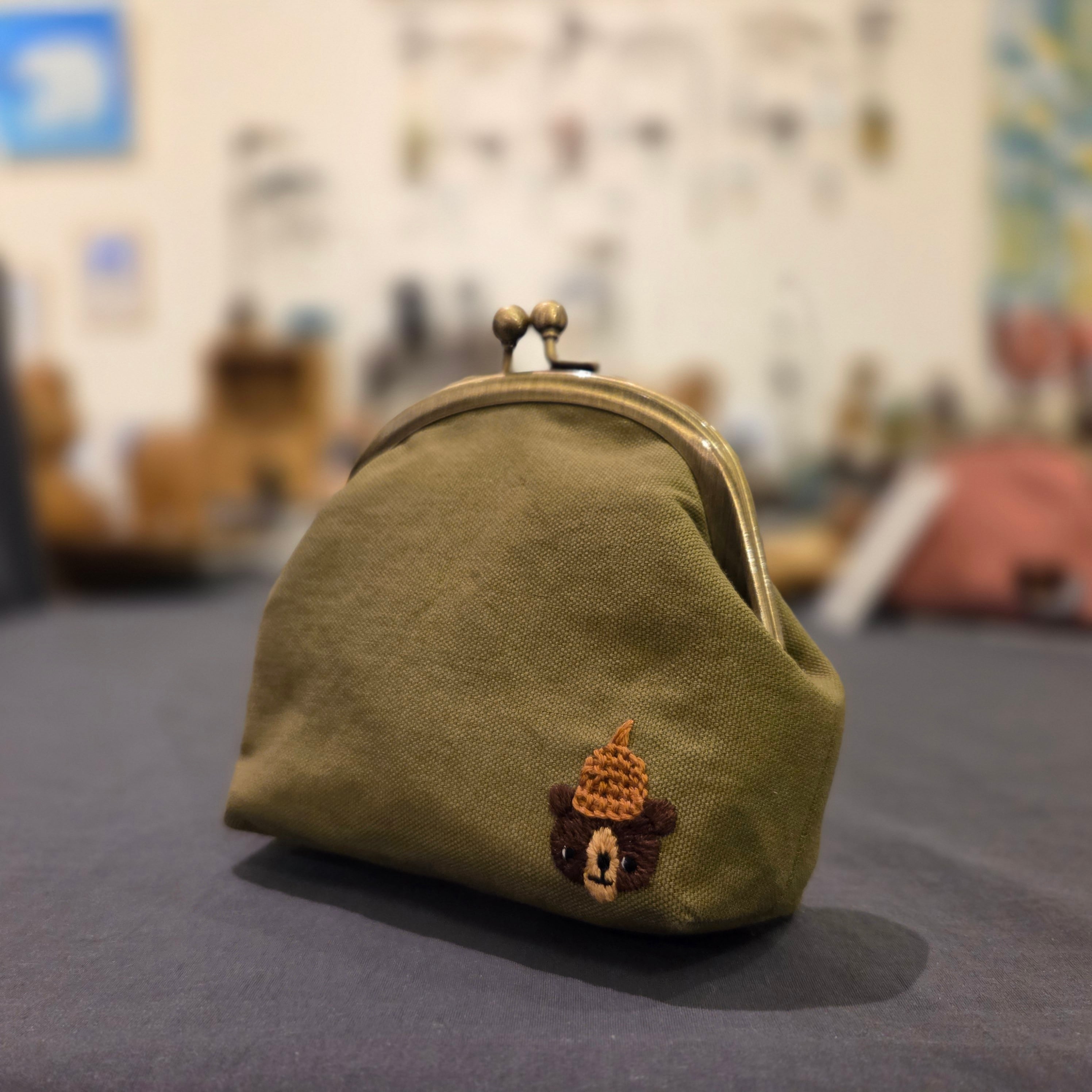 ・作品名:ラウンドポーチくま×どんぐり 緑