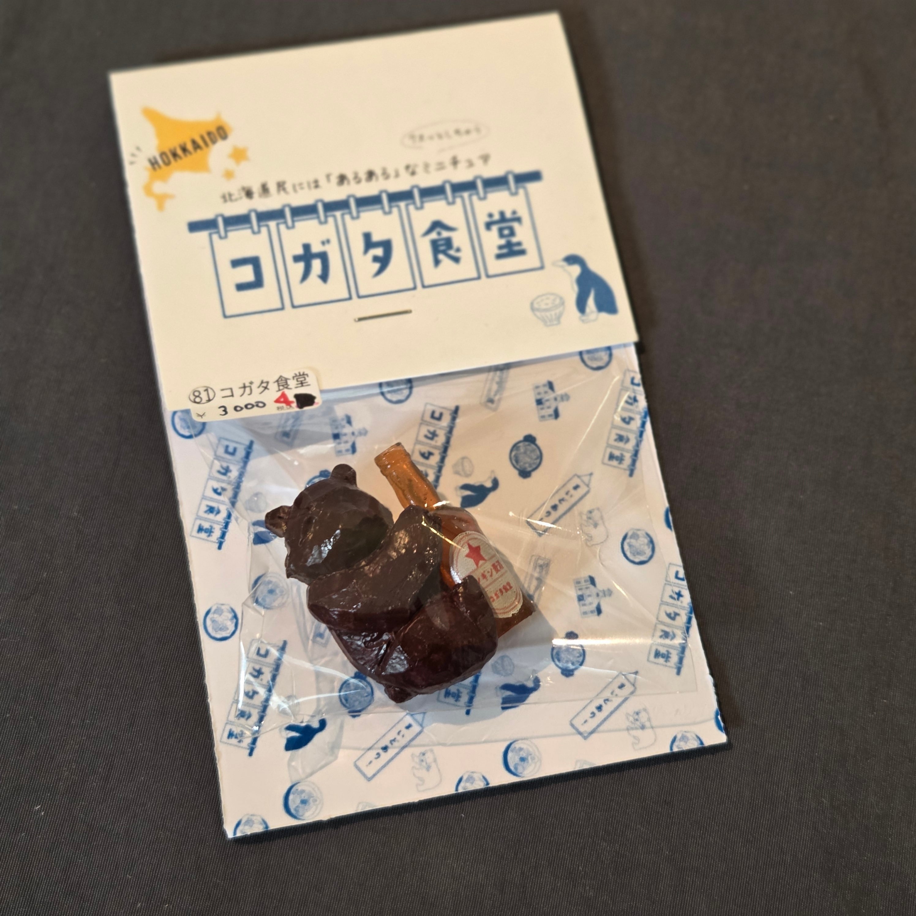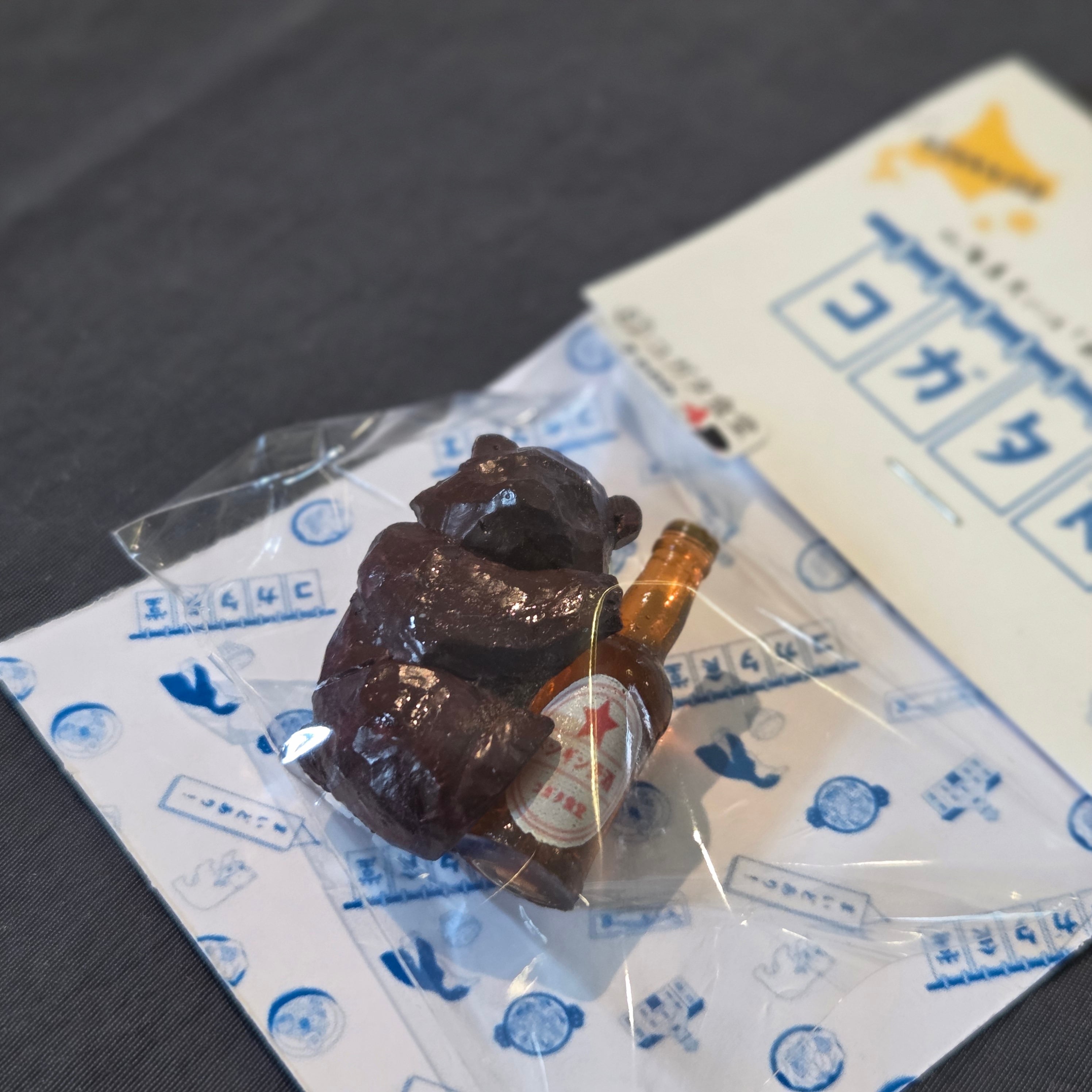 ・その他:鮭を咥えた荒々しい木彫りのクマの他に、北海道民の家にあったお酒を抱えた木彫りのクマをモチーフにしました。コロンとした姿がかわいらしいです。