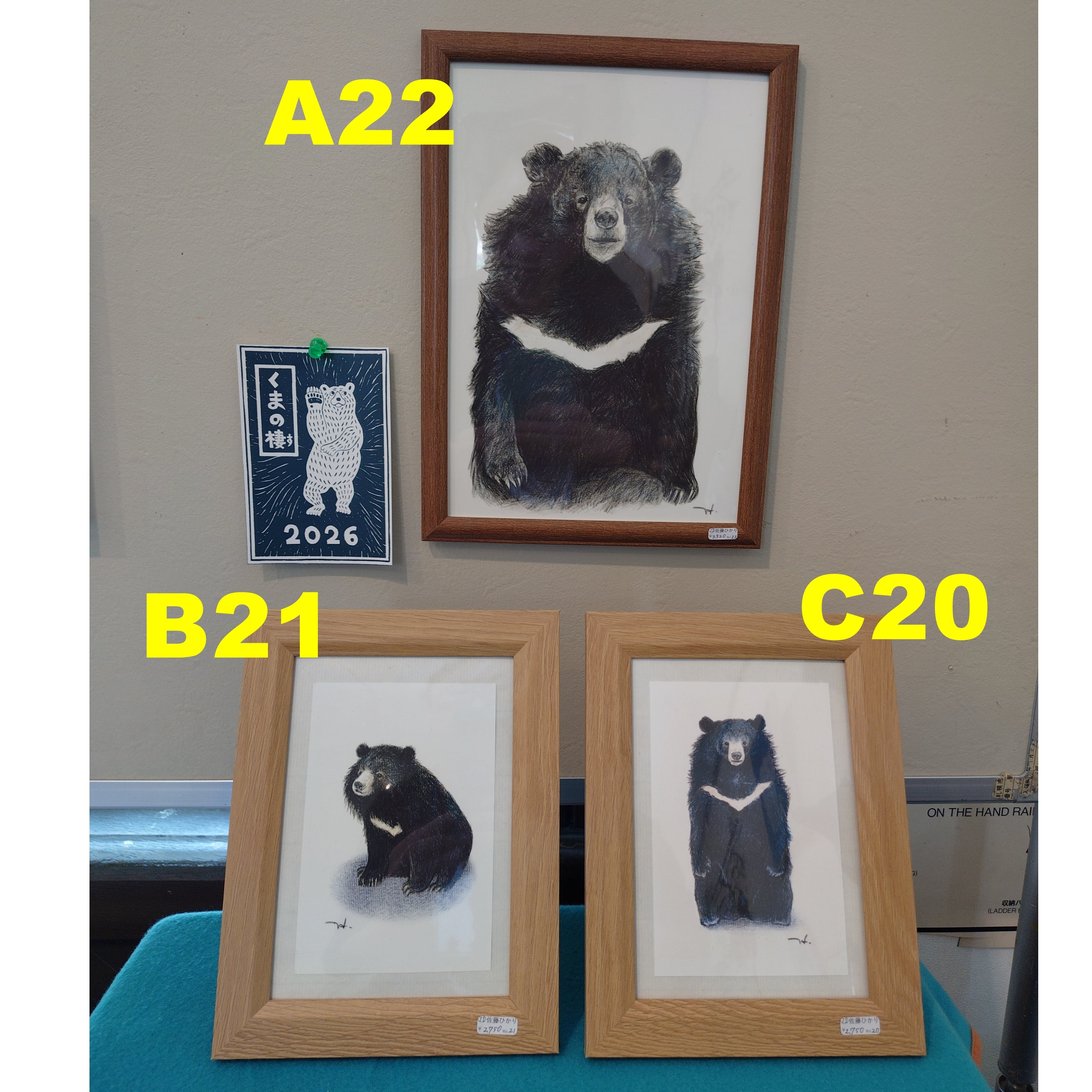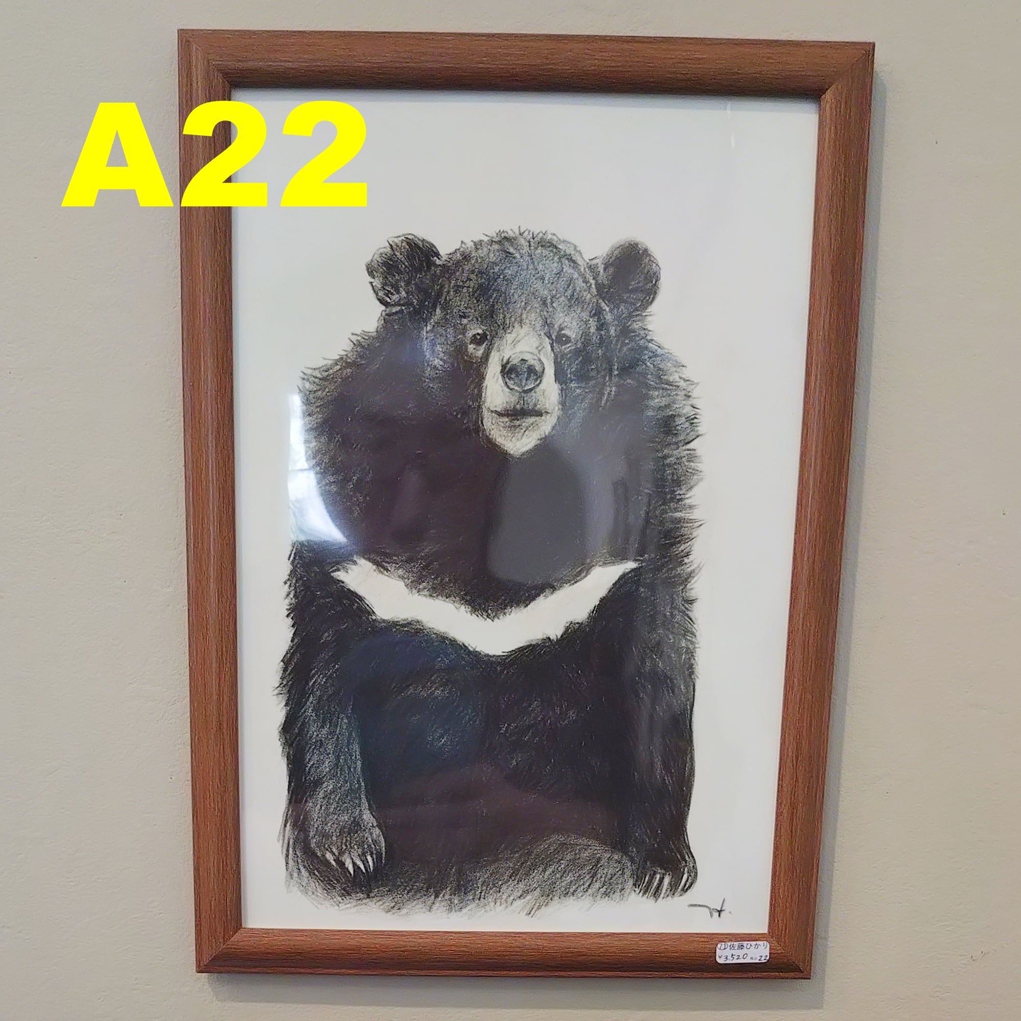 A22:色鉛筆画(大)プリント ヒマラヤグマ(胸像) 縦298×横210mm(紙)、縦318×横233mm(額)