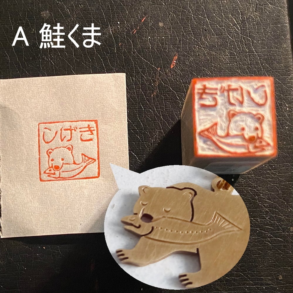闇月創房がデザインしたくまが彫られたお名前ハンコです。